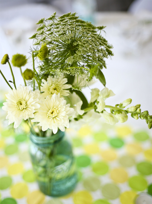 為了顯得更加小清新,可以把餐布、杯子、花瓶都換成綠色或白色。植物的花盆不要太厚重,盡量多用玻璃器皿,制造有風吹過的通透感。
