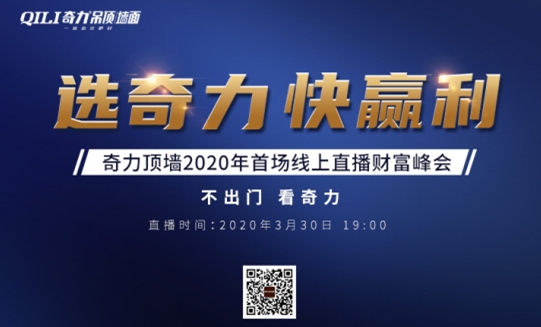 “選奇力 快盈利” 奇力頂墻2020首場線上直播財富峰會 2020年3月30日19:30, 不出門,看奇力! 讓我們一起走向財富巔峰!